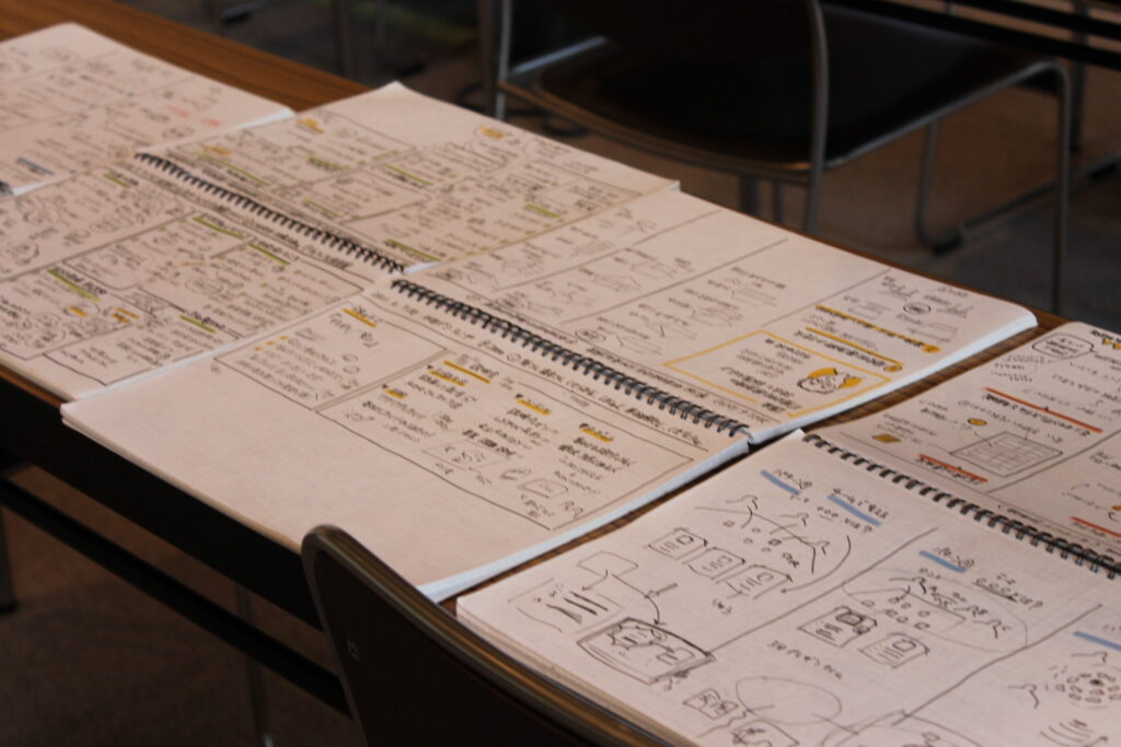 実際に描くワークショップを行い、参加者同士でメモを見せあい、他人のメモを見る事は、とても勉強になるとアドバイスされました。
