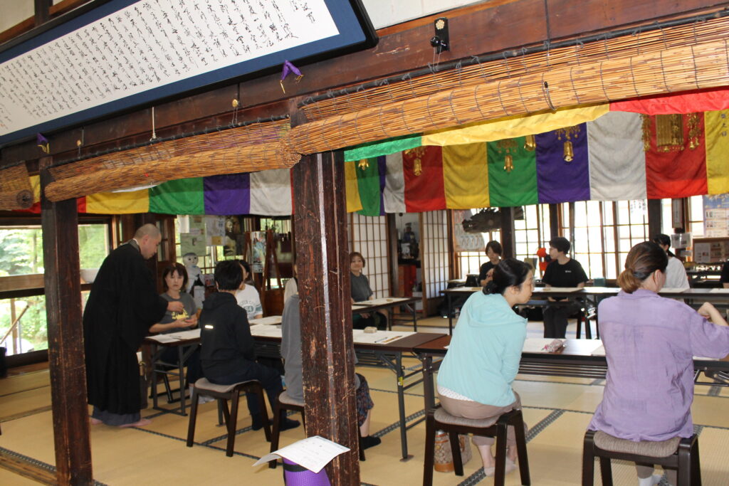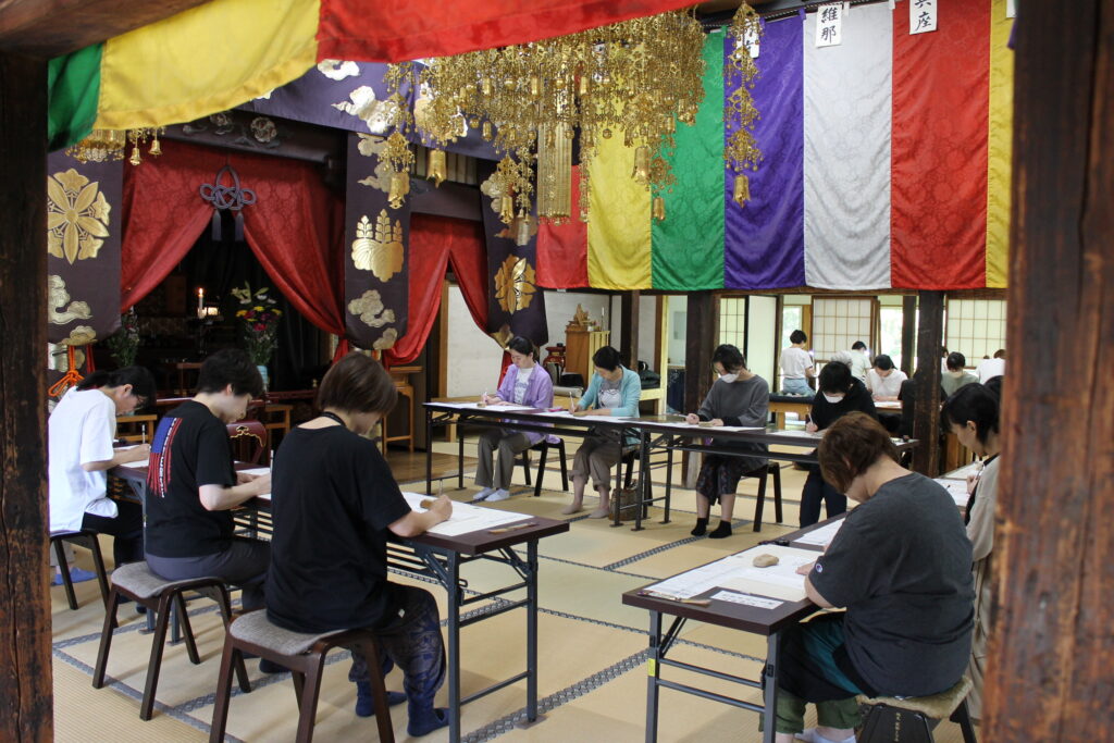最後に皆で合掌して、佐藤氏が普回向を唱え、気持ちを落ち着かせて講座を終えました。写経に必要なものを手に入れやすい環境になったものの、始めるのが難しい場合、今回の大館学び大学のように「今出来る」環境に飛び込んでみることも手段のひとつとおっしゃっていました。